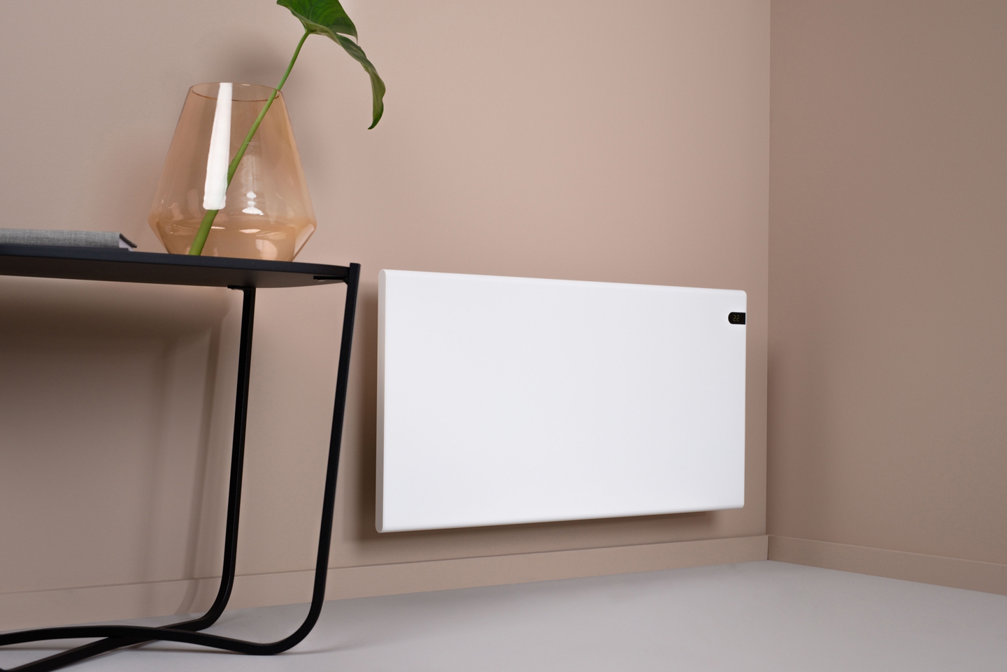 Het paneel is mooi gevorm met afgeronde lijnen. Een digitale thermostaat is ingebouwd.