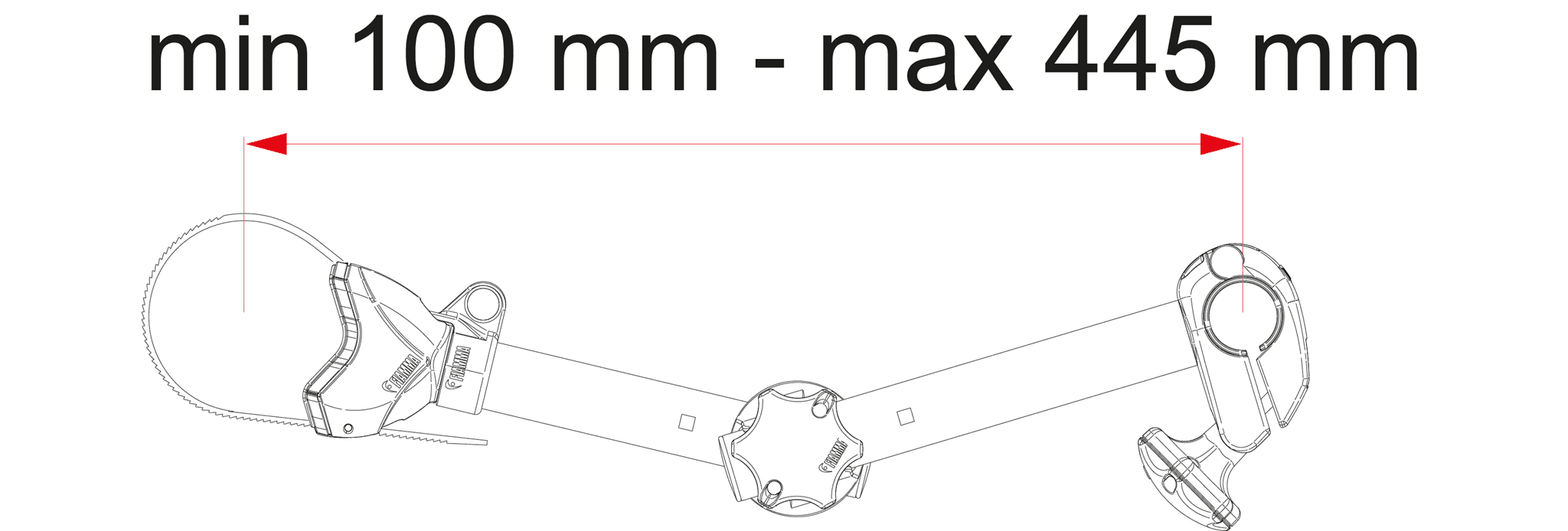 - Afstand tussen de kernen van de buis en fiets frame min. 100 mm en max. 445 mm