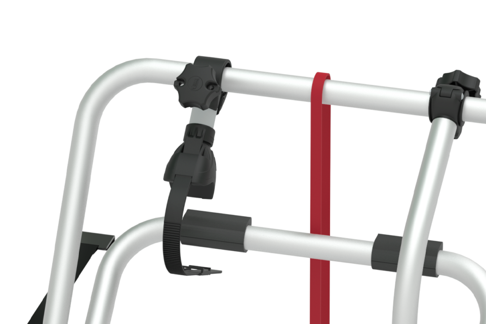 Deze fietsendrager is zeer stevig, voor de bevestiging is geen gereedschap nodig, 6 stevige riemen van de beste kwaliteit houden de fietsendrager op zijn plaats.