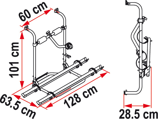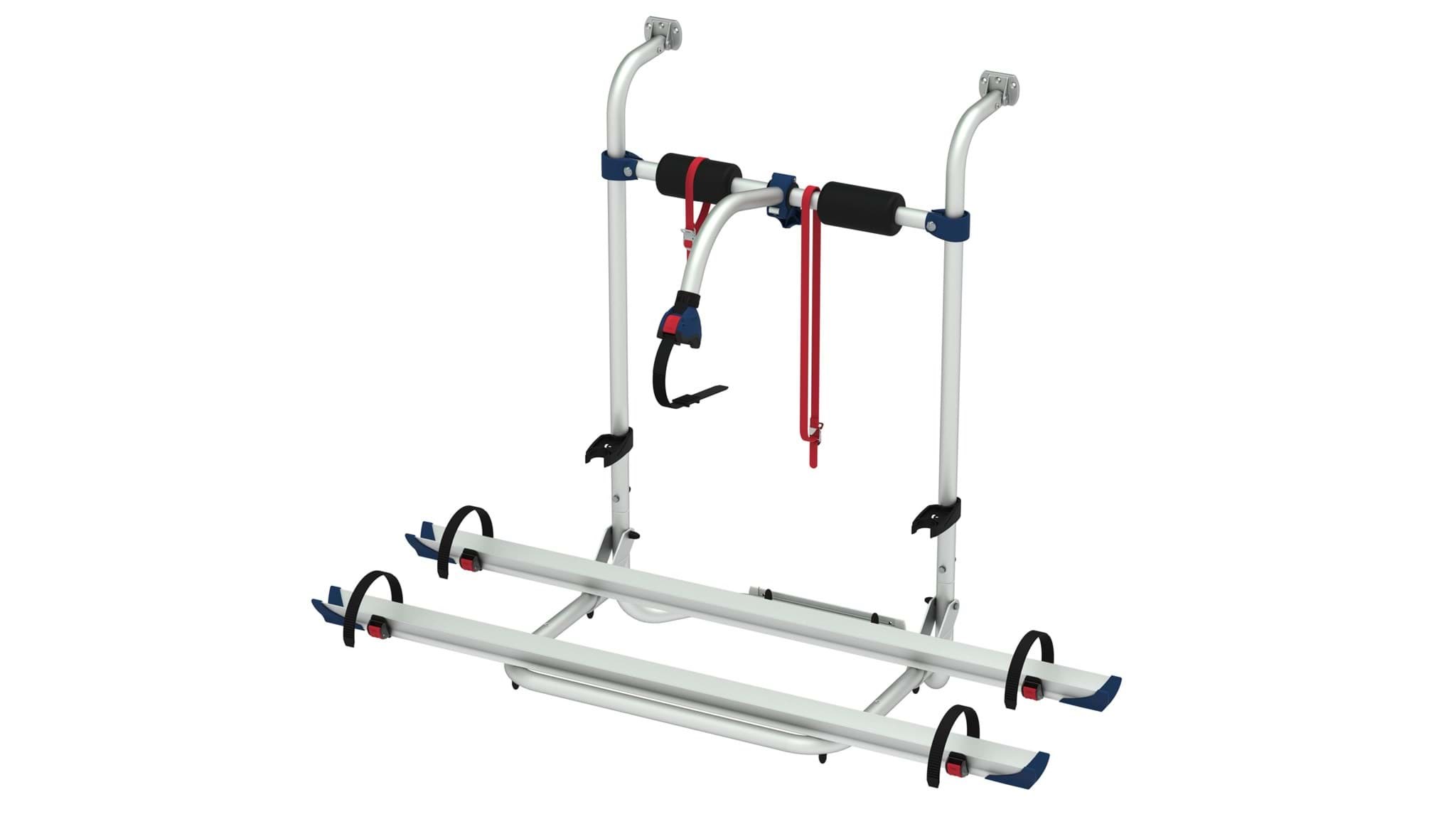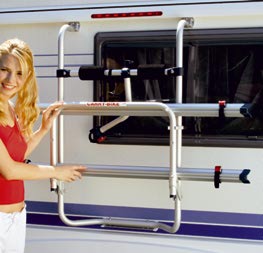 Fietsenrek speciaal ontworpen voor de nieuwe Hobby caravan na 2003 welke voorzien is van spoiler met derde remlicht aan de achterzijde.