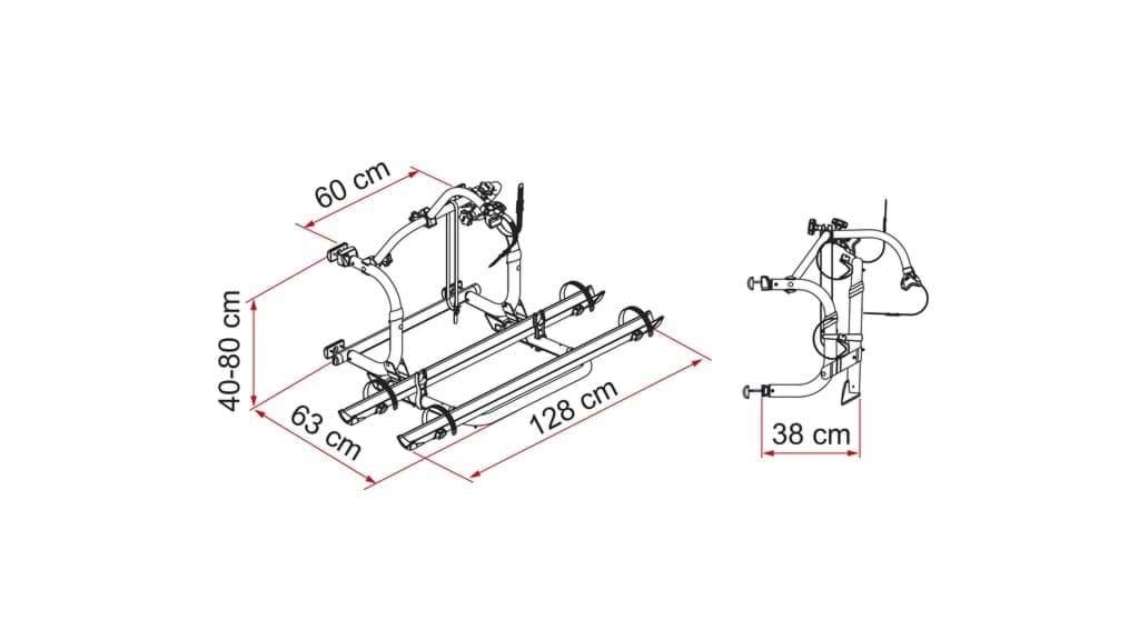 RVS draagframe. Geschikt voor montage aan de achterzijde van de camper. Dankzij het beperkte wandframe van slechts 40 tot 50 cm geschikt voor montage onder het raam.