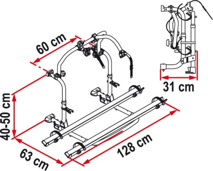 RVS draagframe. Geschikt voor montage aan de achterzijde van de camper. Dankzij het beperkte wandframe van slechts 40 tot 50 cm geschikt voor montage onder het raam.