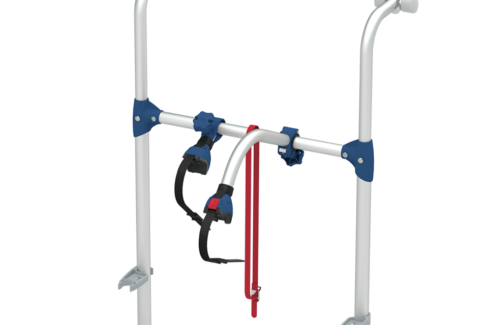 Fietsendrager geschikt voor alle Hymer campers welke standaard voorzien zijn van bovenbevestigingsbeugels.