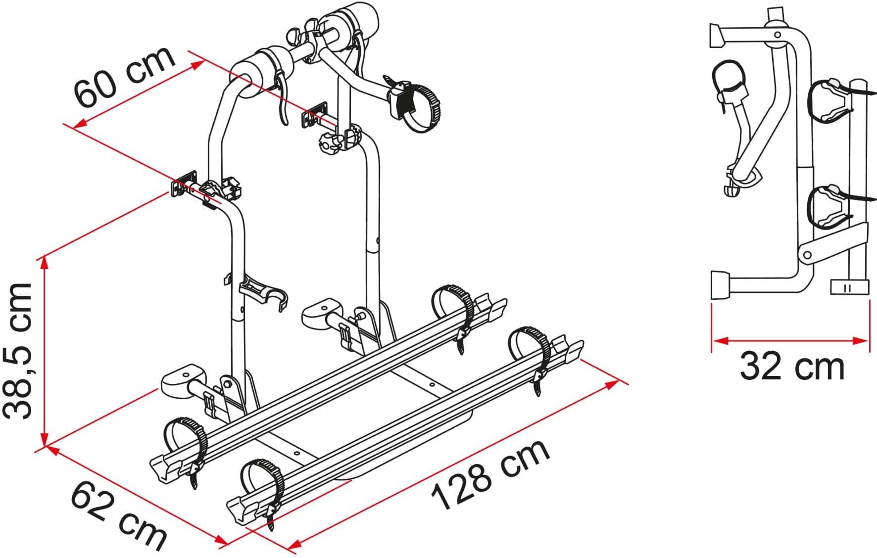Fietsenrek gebaseerd op het type CL maar speciaal afgestemd op campers van het merk Chausson, Challenger, Autoroller en CI welke vanuit de fabriek al voorzien zijn van wand bevestigingspunten.