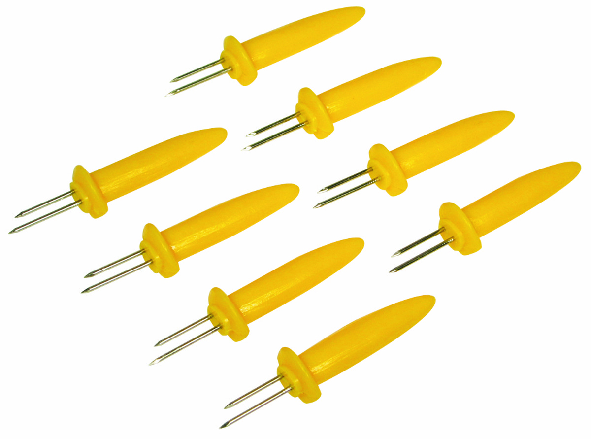 Setje van 8 stuks maiskolfhouders. Plastic houder met roestvrij stalen vorkje.