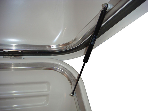 Dakkoffer met grote capaciteit. Elegant en aerodynamisch design. Vangt minder wind op wanneer hij gemonteerd is op de camper, busje of auto. Handige opening aan de zijkant met dubbele veiligheidssluiting. Voorzien van bevestigingsbeugels en schroeven van roestvrij staal.